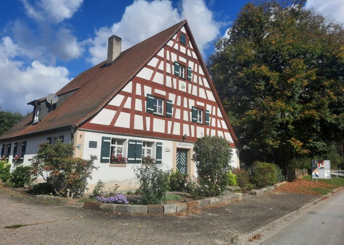 Für die zweite Etappe des Jakobwegs Nürnberg – Eichstätt von Furth nach Hilpoltstein habe ich einen wundervollen Tag erwischt: einen perfekten Herbsttag mit Sonne, einem leichten Lüftchen und richtig herrlich frischer Luft. Gestartet bin ich in Leerstetten, aber mein eigentlicher Startpunkt ist Furth. Nur Furth ist, glaube ich, mit öffentlichen Verkehrsmitteln nicht so super zu erreichen. Zumindest hatte ich keine Lust, das intensiver zu recherchieren. Es schien mir zu umständlich, sodass ich einfach in Leerstetten aus dem Bus ausgestiegen und zu Fuß nach Furth gegangen bin. Da war ich schon einmal. Denn beim letzten Mal endete meine Tour hier. Für die Rückfahrt lief ich dann wieder nach Leerstetten. Also habe ich diese Strecke jetzt schon drei Mal hinter mir. Sie ist auch nicht allzu lang, nur drei Kilometer.
