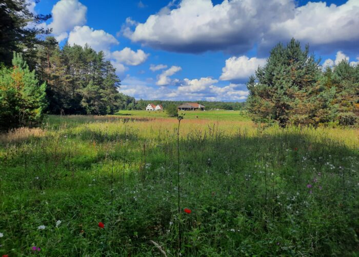 Von Furth aus bin ich durch einen schönen, lichten und recht aufgeräumten Wald nach Harrlach gelaufen, wo ich dann erstaunlich schnell den Weg in Richtung Allersberg und Rothsee finde. Nette Orte, am Rand Pferdewiesen, unterwegs begleiten mich Schmetterlinge auf meinem Weg von Nürnberg nach Eichstätt. Okay, ich stolpere auch fast über eine tote Maus, aber insgesamt ist der Weg sehr schön. Durch Harrlach gehe ich dann schnell. Ich dachte eigentlich, ich finde hier noch irgendwo eine Bank, um einen weiteren Kaffee zu trinken und ein bisschen zu diktieren, was ich unterwegs gesehen habe, aber in Harrlach stand keine Bank am Rand meines Weges.