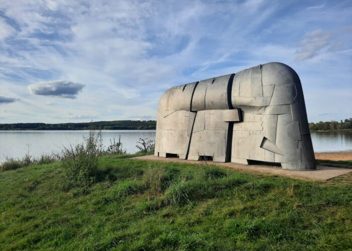 Allersberg auf der richtigen Seite der Weggabel zu verlassen, ist nicht ganz trivial, weil hier wirklich viele Wanderwege, nicht nur der Jakobsweg Nürnberg – Eichstätt entlangführen. Alle Wege scheinen sich hier zu kreuzen, man kommt an manchen Stellen mit einem Dutzend Wanderwegschildern gar nicht aus, eben waren es locker zwanzig. Bald muss es hier unter der Autobahn durchgehen oder eben über die Autobahn hinweg, deshalb rauscht es auch so im Hintergrund. Auf alle Fälle bewege ich mich in Richtung Rothsee, an dem entlang ich dann ungefähr sieben Kilometer nach Hilpoltstein laufen werde. Ich freue mich sehr auf den See und habe die Route extra so gewählt, dass ich möglichst viele Kilometer am Wasser entlanglaufe.